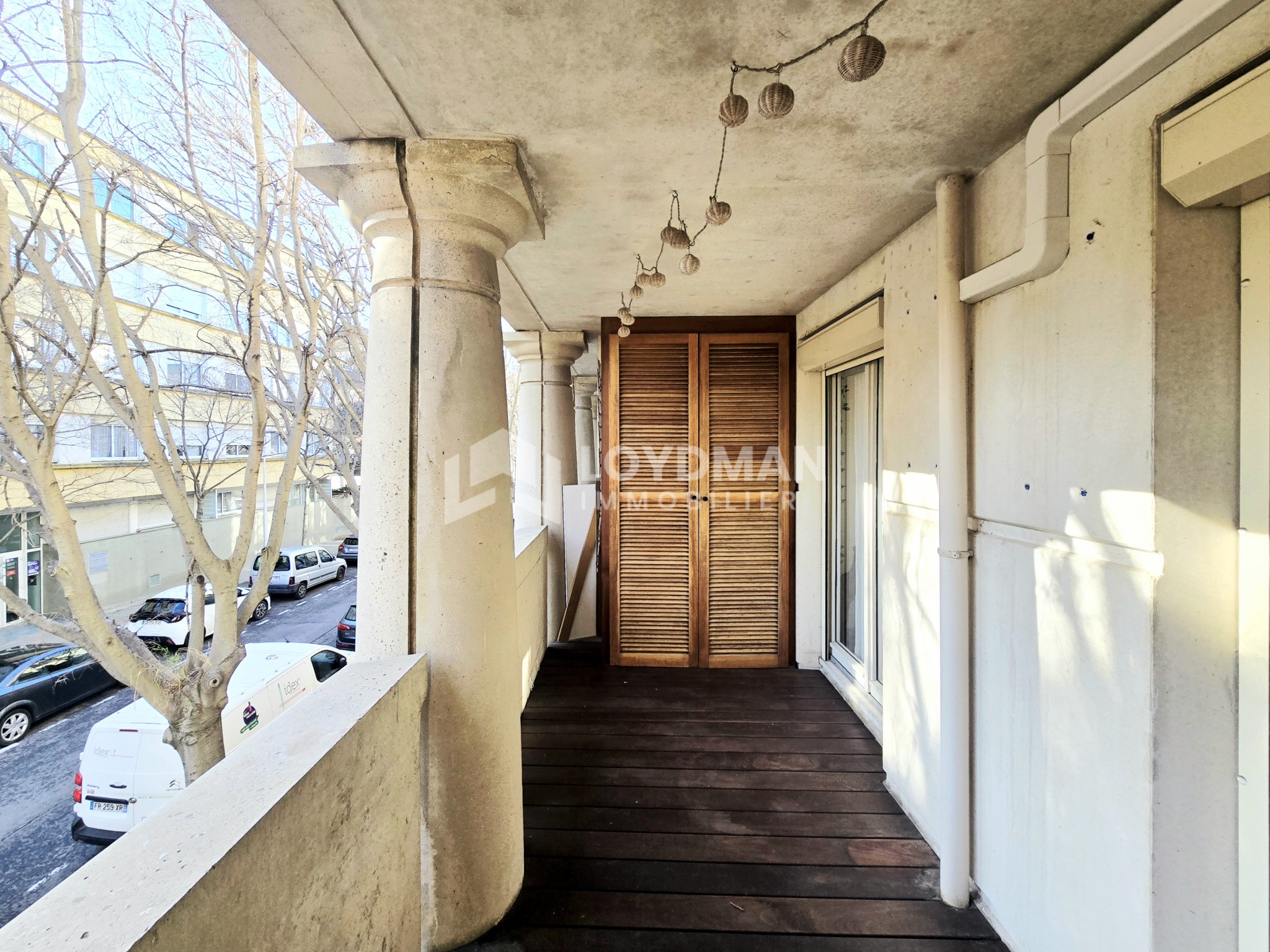 Un sublime parquet collé en chêne massif, signature chaleureuse du lieu.Des ouvertures partout : le soleil entre naturellement dans toutes les pièces de l’appartement.Une terrasse en teck de 8,55 m2 — le café du matin ou le verre du soir, au choix.Un parking sécurisé en sous-sol.Des charges de 130 € / mois comprenant eau chaude et chauffage : un excellent rapport qualité / prix.